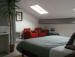 . Chambre 2 pers. . 1 lit 180x190 ou 2 lits 90x190 + 1 lits 90x190 . 3ème étage (sous les toits) . Baignoire sans bouchon* / Lavabos (2) / WC . Coin salon - Bureaux - Placards de rangement . Draps et linge de toilette fournis . Accès WIFI *